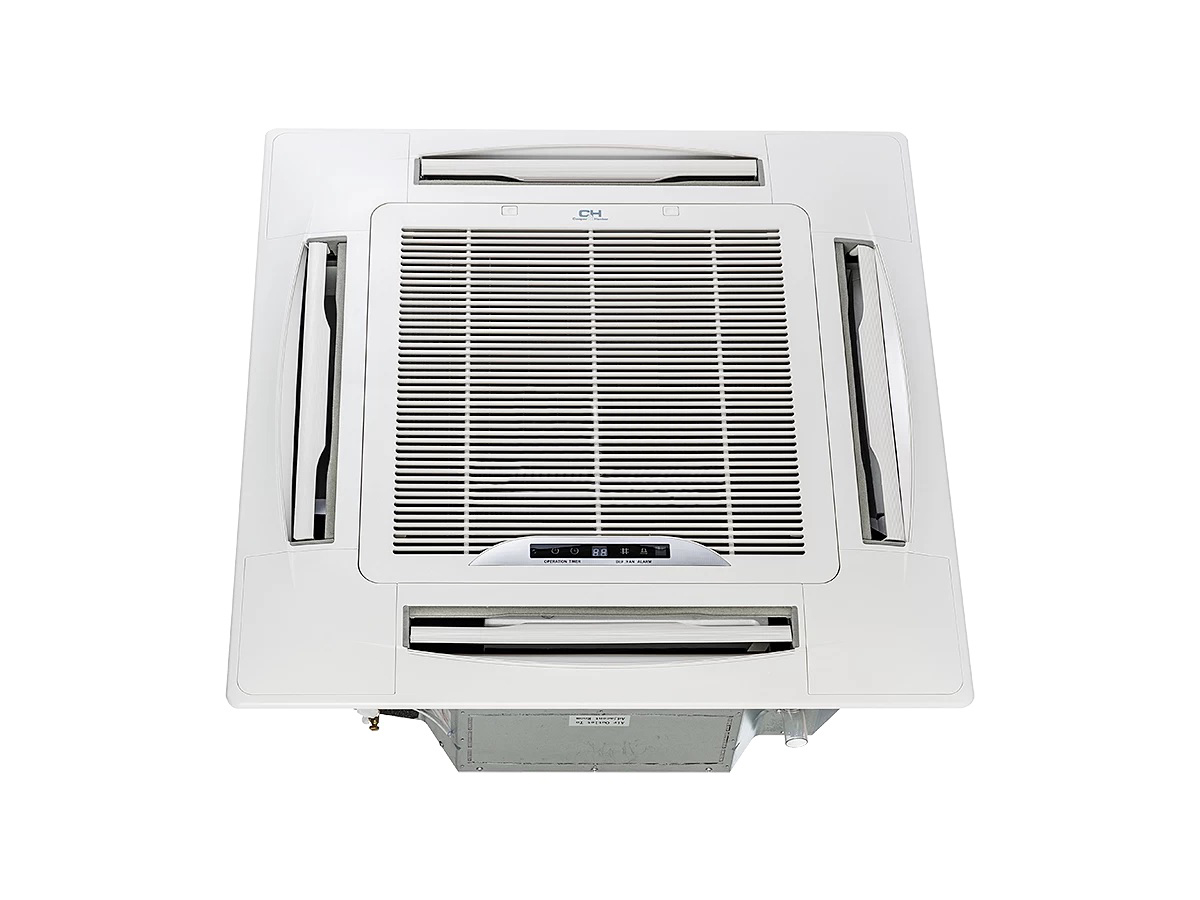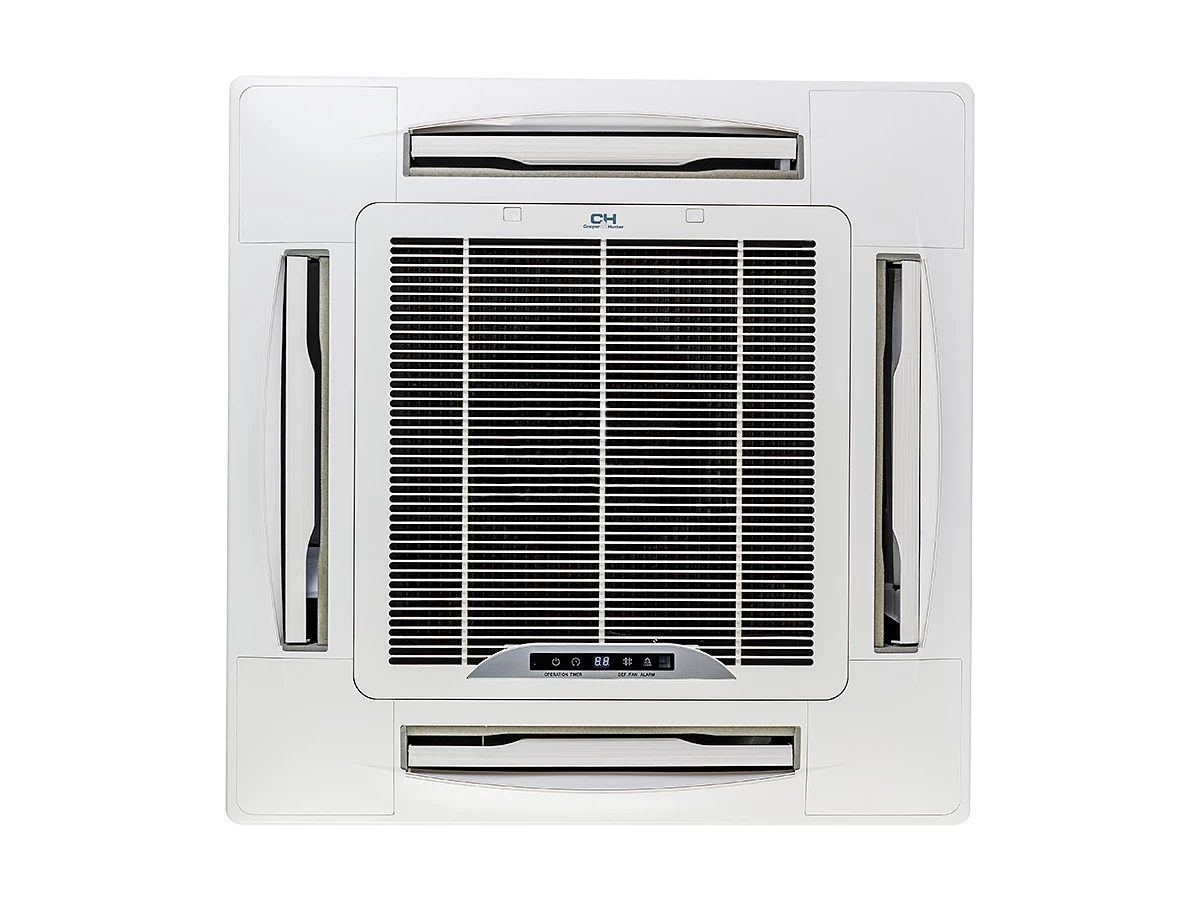 Касетний 4-х потоковий фанкойл Cooper&Hunter використовують для нагрівання та/або кондиціювання повітря найчастіше в промислових приміщеннях, таких як ресторан, офіс, переговорна кімната, виставковий зал і т.д.