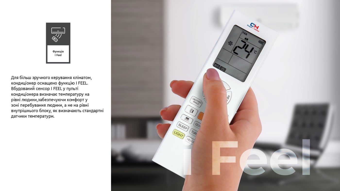 Датчик, встановлений у пульті дистанційного керування, визначає температуру навколишнього середовища, надсилаючи сигнал до внутрішнього блоку, щоб він міг контролювати потік повітря та температуру.