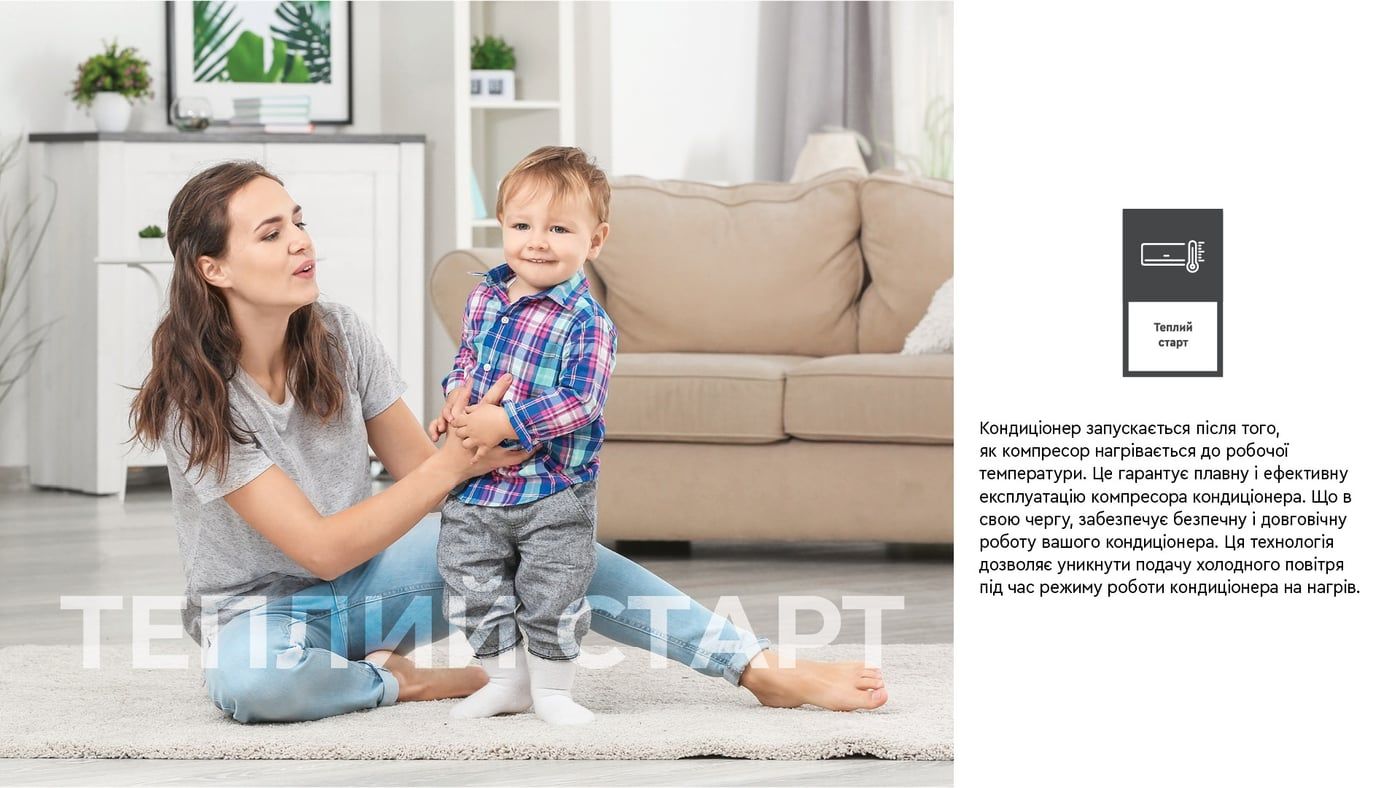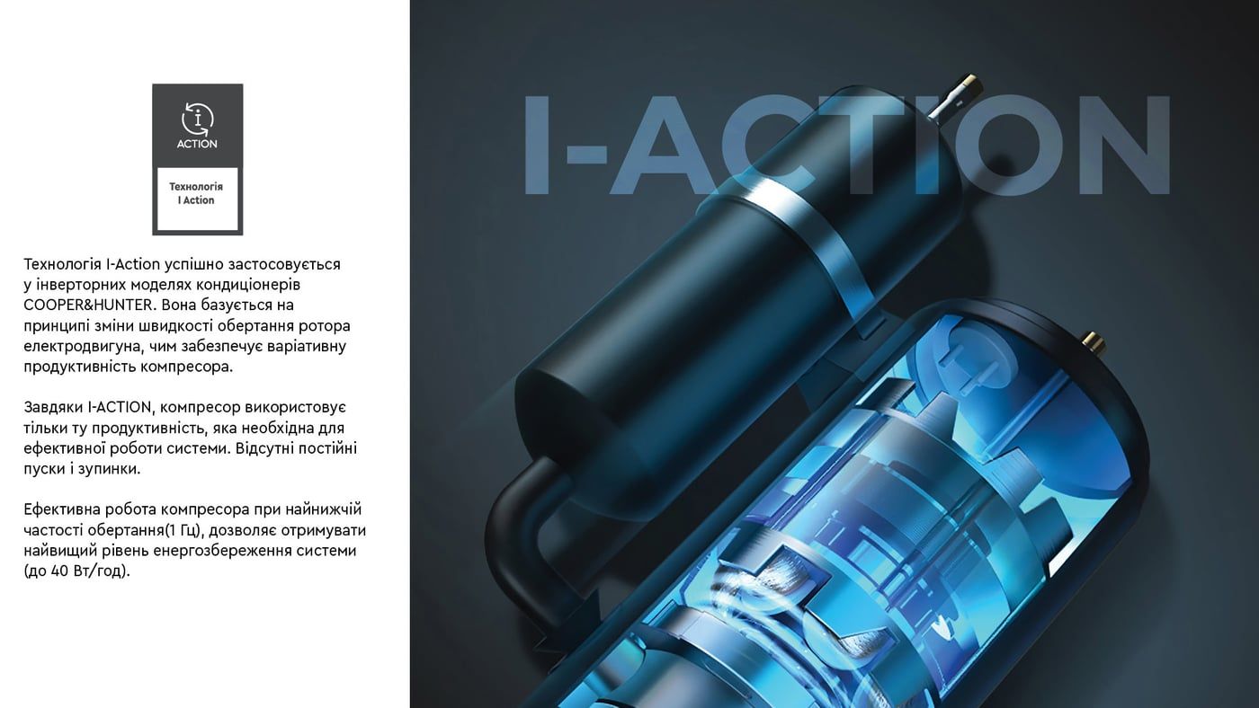 - Удосконалене програмне забезпечення, яке оптимізує роботу кондиціонера у широкому діапазоні частот обертання компресора;