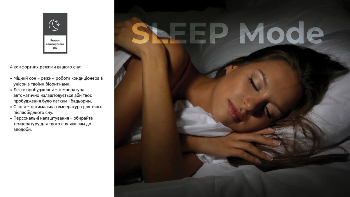 За допомогою цієї опції користувач може значно знизити рівень шуму під час сну, завдяки налаштуванню низької швидкості вентилятора