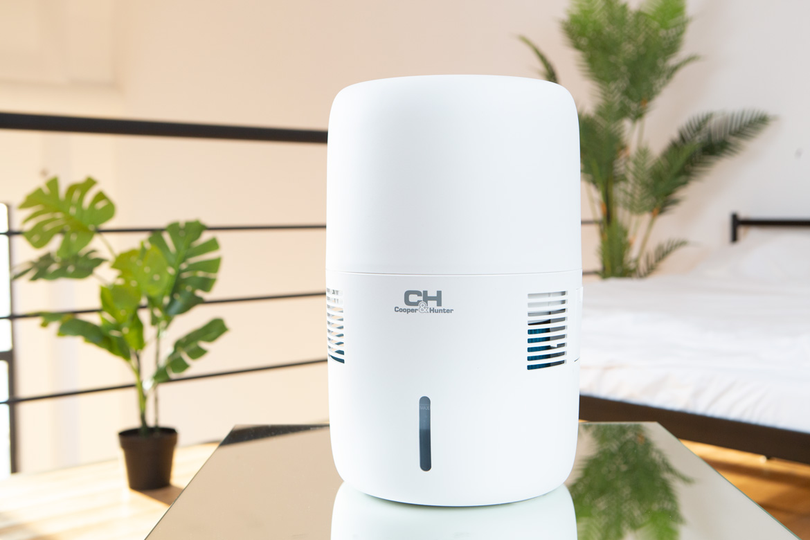 Зволожувач повітря Cooper&Hunter для приміщень 30-50 м2; Ефективність зволоження становить 330 мл/год; Працює від мережі 220В; Об’єм резервуару 3 л